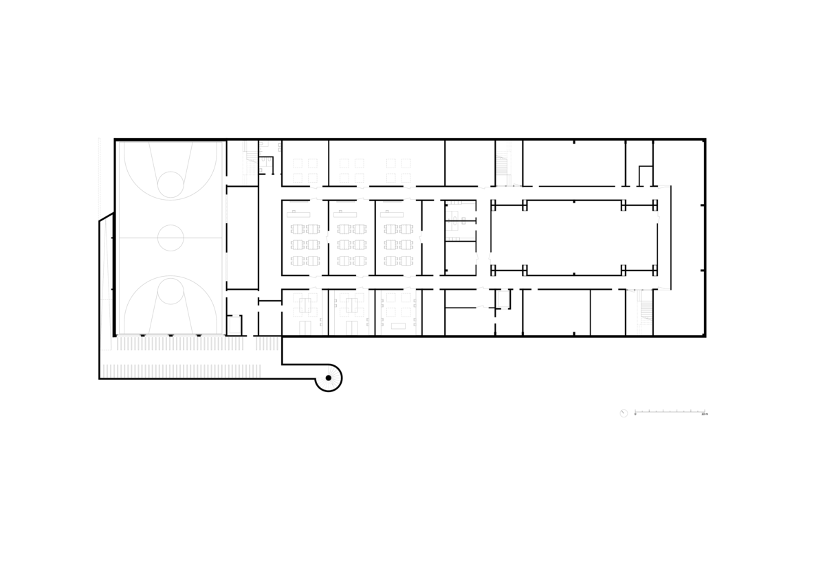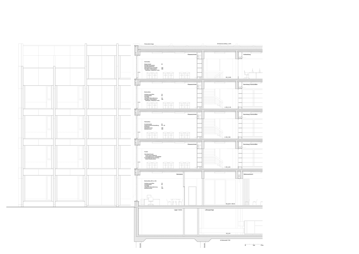 Morphologische Vorlage für die Baugewerbliche Berufsschule im ehemaligen Industriequartier bilden zahlreiche Bestandesbauten mit durchwegs grossen Fussabdrücken. Massstab und Geschichte sollen im Entwurf zu stadträumlichen Parametern werden - wie in Giorgio de Chiricos metaphysischen Stadtlandschaften. In seinen Bildern erzählt der Maler vom spannungsvollen Dialog zwischen Körper und Leere. Von der Magie des Momentes, von der Stille eines Ortes, der im nächsten Moment zum Rummelplatz wird. De Chirico bietet seinen Protagonisten Raumbühnen, auf denen sie sich entfalten können. Bild und Kontext werden für die Berufsschule zur vielschichtigen Quelle städtebaulicher Neuinterpretation.