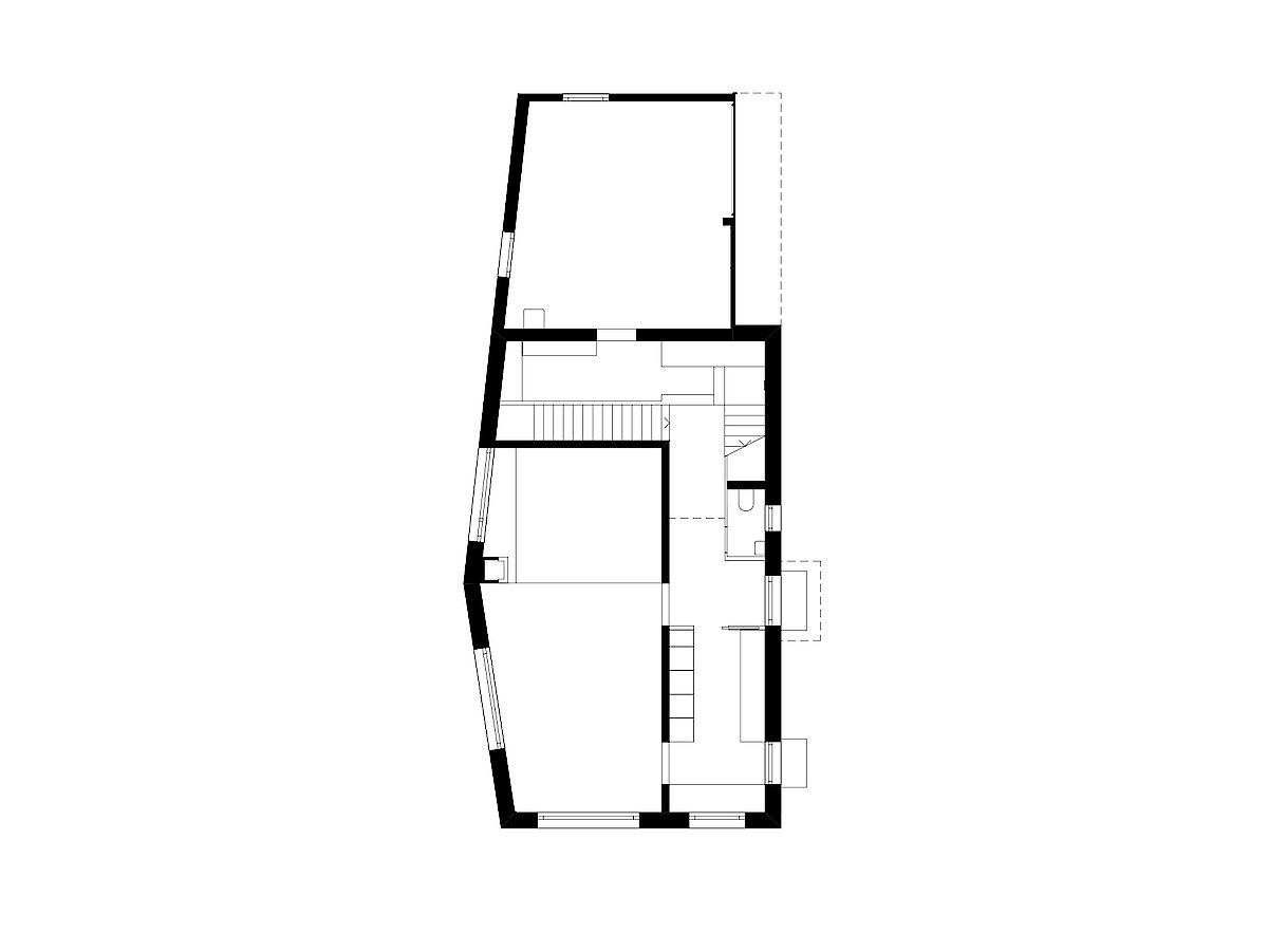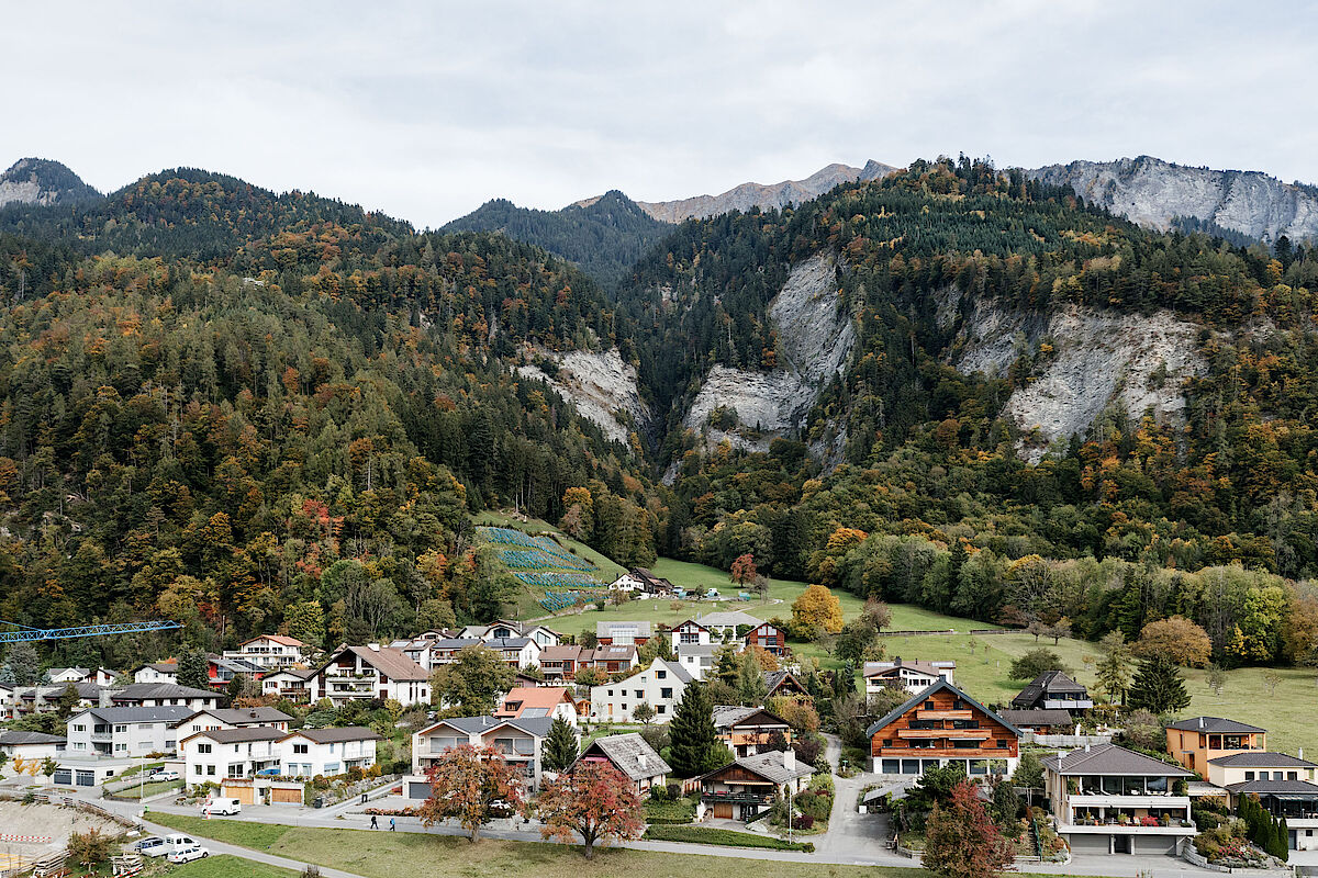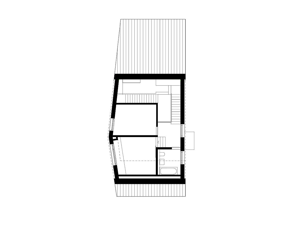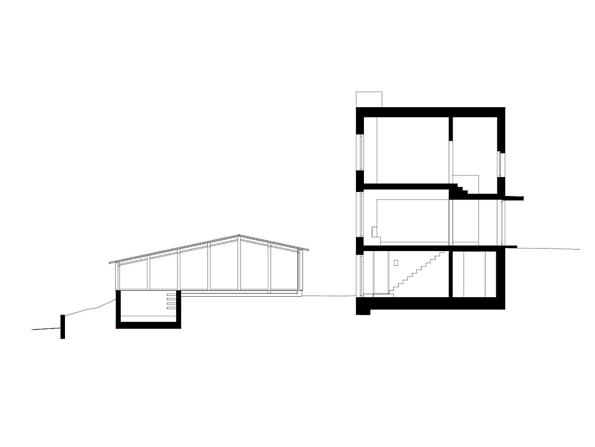 Am südlichen Dorfrand von Jenins gelegen, reiht sich das Wohnhaus selbstverständlich in die morphologische Dorfstruktur ein. Sämtliche Haupträume verfügen über einen malerischen Blick in die beeindruckende Landschaft. Die Hauptfassade wird durch eine leichte Abknickung gegliedert. Diese Massnahme ermöglicht Ausblicke aus dem Ess- und Wohnbereich Richtung Haldensteiner Calanda oder in die nahe gelegenen Rebhänge. Gleichzeitig verweist der Knick auch auf das Cheminée im Innern, welches mit der Fassade und dem ikonografischen Dach verschmilzt. Ein schmaler Aussenpool schliesst das Grundstück talseitig ab. Der zentrale Wohn-Essraum verfügt über grosse Panoramafenster. Anstelle eines zentralen Treppenhauses sind die einzelnen Geschosse und Zwischenniveaus durch Treppenfolgen oder wenige Stufen miteinander verbunden. Diese vielfältige Erschliessungsschicht beinhaltet aber auch funktionale Räume wie die Ankleide oder die Küche. Die Bescheidenheit im äusseren Ausdruck verbirgt einen grossen Reichtum im Inneren.
