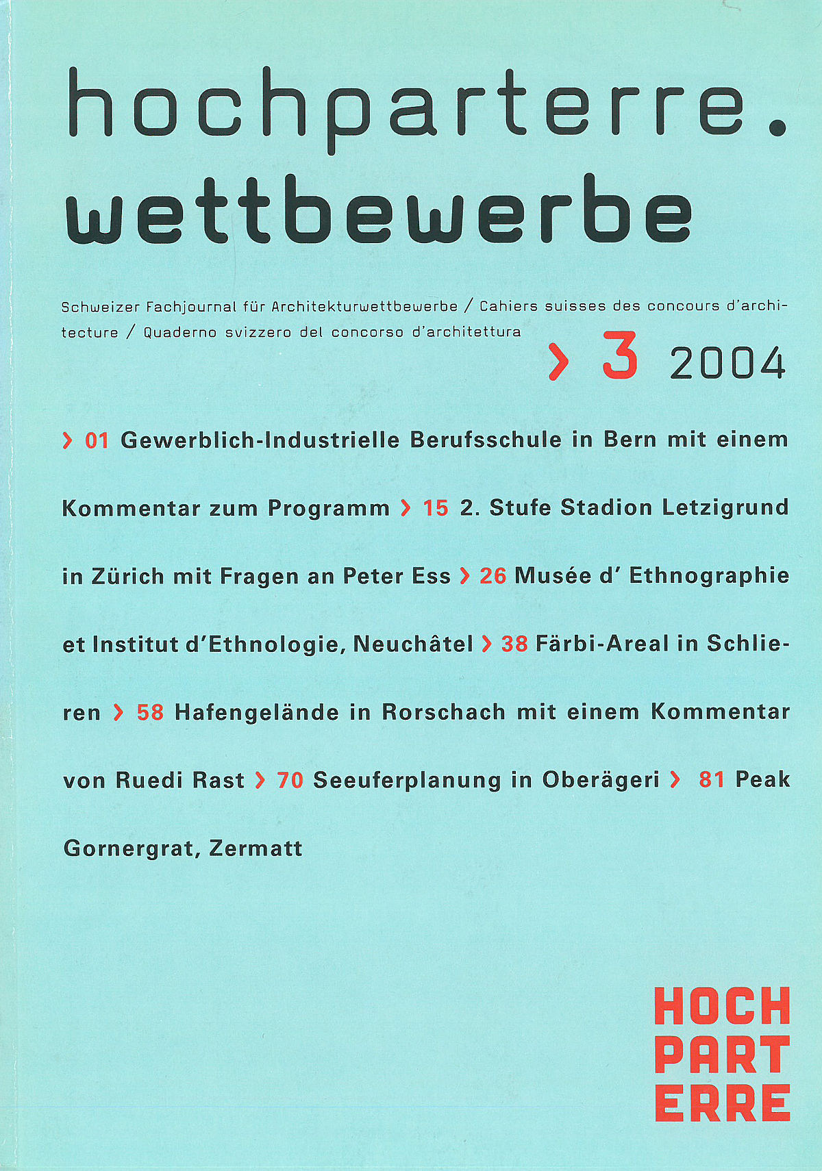 Beiträge Wettbewerb Stadion Letzigrund, Zürich und Wettbewerb Färbi-Areal, Schlieren in Hochparterre Wettbewerbe, 2004