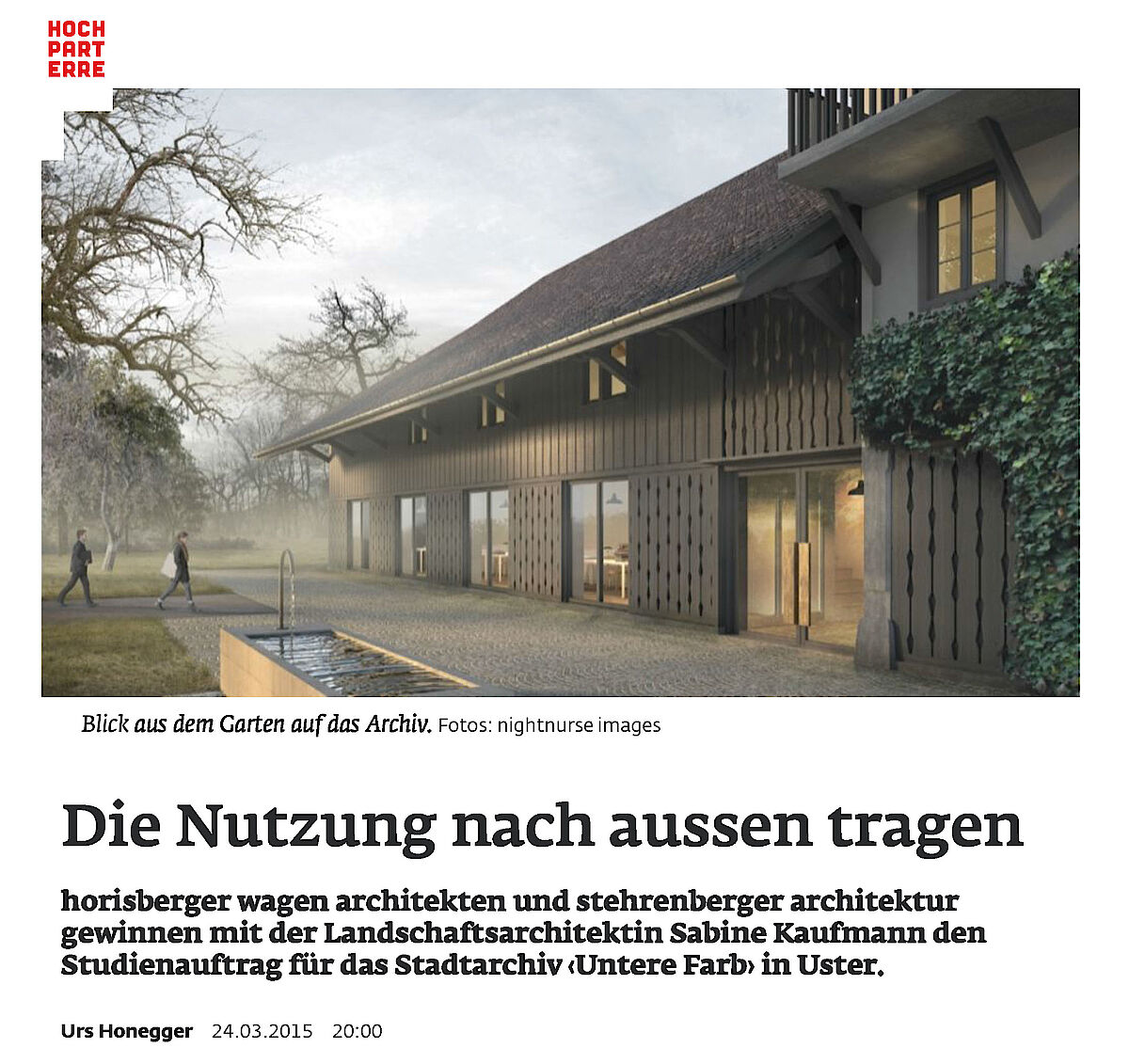 Beitrag Studienauftrag Stadtarchiv Untere Farb, Uster auf www.hochparterre.ch, 2015