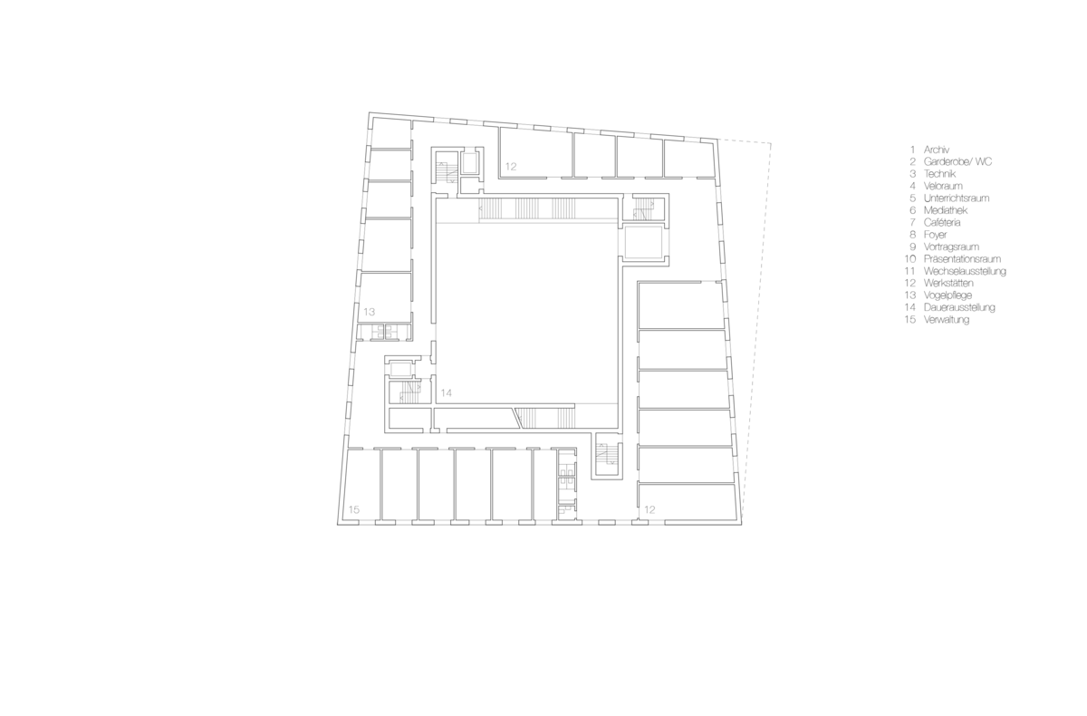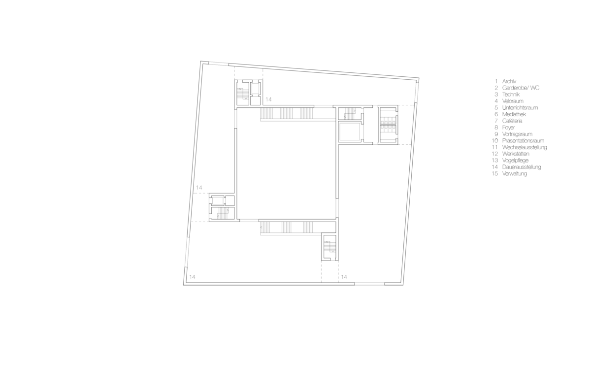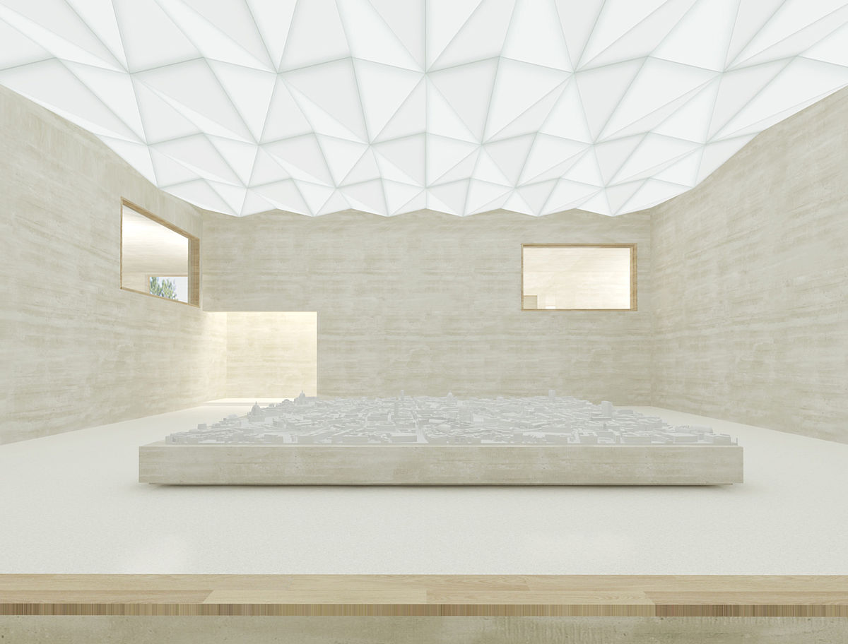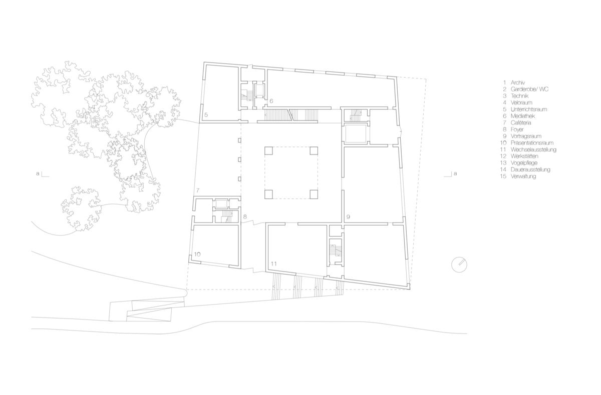 Im heterogenen Stadtgefüge verhält sich der Baukörper mit seiner Setzung und Höhenentwicklung zurückhaltend und stellt die gegebenen Hierarchien nicht in Frage. Ein geschwungener Weg verbindet das Museum mit dem zugehörigen Botanischen Garten im Norden. Ein massiver, erdiger Körper bildet das Kernstück des Hauses. Dieses Gebilde begleitet den Besucher beim Durchschreiten des Hauses; die Erschliessung funktioniert um ihn und durch ihn.