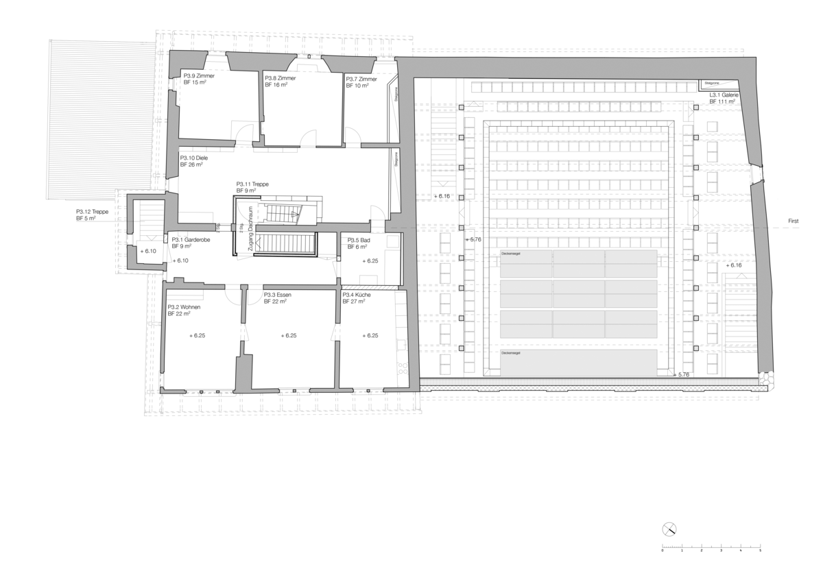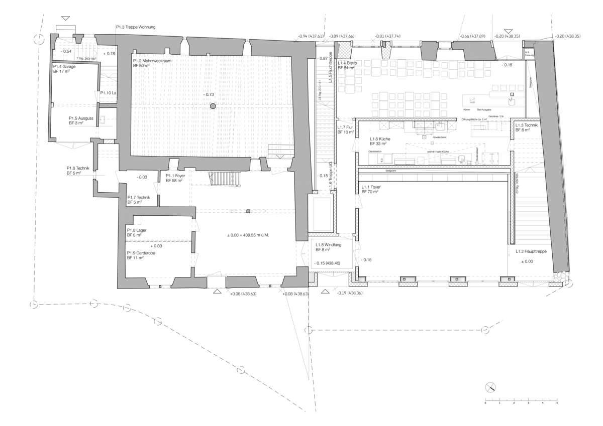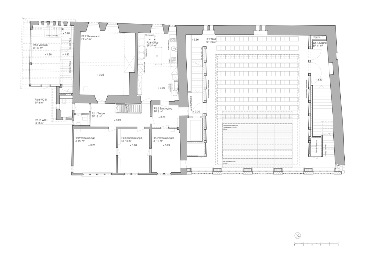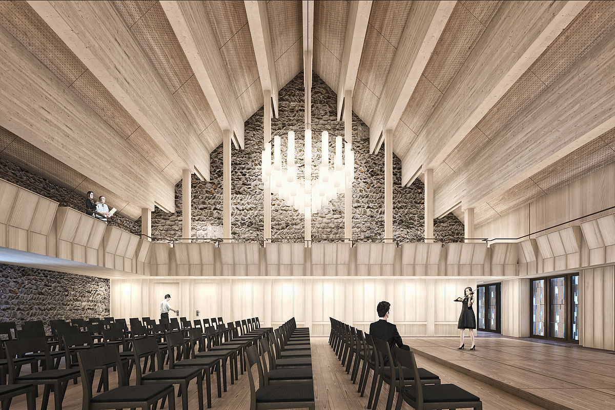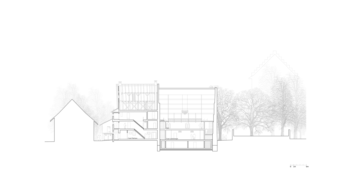 Das Landenberghaus hat sich zu einem etablierten und bewährten Zentrum des gesellschaftlichen, politischen und kulturellen Lebens der Gemeinde Greifensee und der umliegenden Region entwickelt. Sein Saal und die angegliederten Nutzungen sollen grundlegend erneuert werden, um den heutigen und zukünftigen Bedürfnissen gerecht zu werden. Die Umgestaltung soll das vielfältige, aktive Gesellschaftsleben in der Gemeinde erhalten und fördern. Pfarrhaus und Landenberghaus bleiben räumlich als eigene Bauten bestehen. Im Landenberghaus wird eine vertikale Erschliessung mit Treppenanlagen und einem Lastenaufzug angeordnet; die zentrale Treppenanlage im Pfarrhaus bleibt bestehen. Im Erdgeschoss des Landenberghauses ist das Foyer zum Städtli und das Bistro gegen den See angeordnet. Die beiden öffentlichen Räume werden verbunden, können aber auch eigenständig funktionieren.