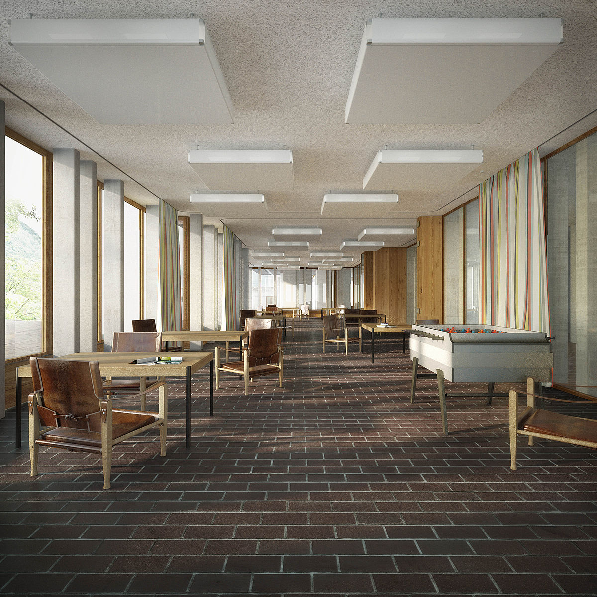 Die Instandsetzung eines wertvollen Objektes ist von kulturhistorischem, architektonischem und gesellschaftlichem Interesse. Als einer der wichtigsten Zeitzeugen der Spätmoderne in der Schweiz verfügt das Churer Konvikt mit seiner imposanten Erscheinung über eine grosse baugeschichtliche Relevanz. Gemäss den Leitsätzen der Eidgenössischen Kommission für Denkmalpflege ist ein Objekt „für die Zeugenschaft als Ganzes wichtig, bei Bauten das Innere ebenso wie das Äussere“. Das vorliegende Konzept zur Sanierung der Gebäudehülle verfolgt die Strategie der umfassenden Substanzerhaltung. Die Massnahmen am Äusseren sind subtil eingreifend oder - der Logik von Otto Glaus folgend - ergänzend: Der Sichtbeton wird sorgsam geflickt, die Mauerkronen in der vorgefundenen Proportion erhöht und die Fensterelemente nur dort ersetzt, wo ihr Zustand kritisch ist. Gleichzeitig werden die heutigen Anforderungen an Sicherheit, Energie und Dichtigkeit erfüllt. Immer aber bleibt die Substanz erhalten und der architektonische Ausdruck gewahrt.